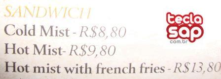 Como vimos no post anterior, “MIST” é “névoa” ou “neblina” e, portanto, não faz o menor sentido em um cardápio. Se fosse um catálogo de perfumes, aí seria outra história! 😉